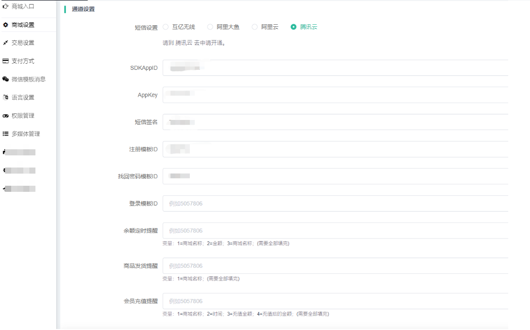 2、短信类型:商城验证码使用的,建议选择验证码短信。