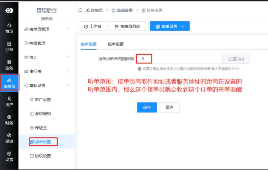 未在听单范围内的接单员看不到订单、没有弹窗、无法接单。