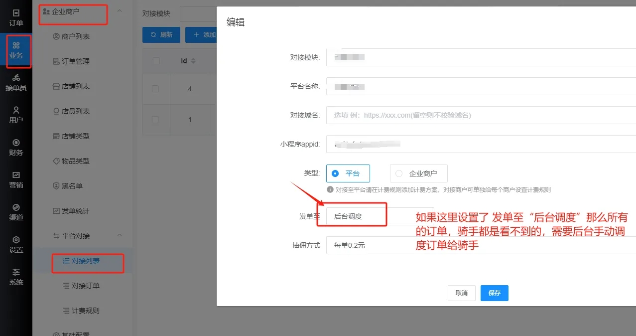如果开了代理的,添加了多个名称一样的场景,并且场景绑定了城市地区,如果有接单员出现上面所说的问题:接单端看不到订单。解决方法:后台找到这个接单员,编辑,将这个接单员归属给对应的代理。然后保存,保存之后,让这个接单员到接单端小程序个人中心-更多认证那里认证一下对应的场景即可。